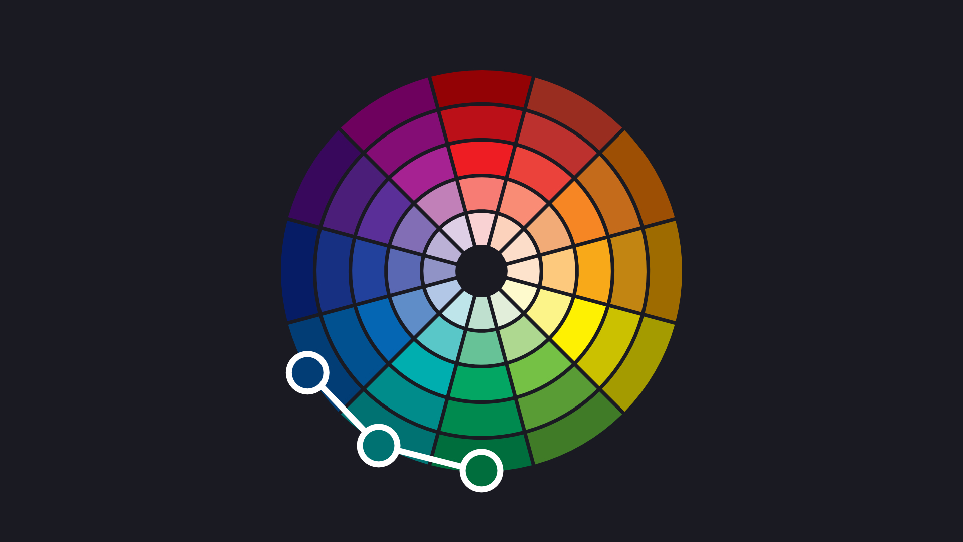 Se as cores complementares são sobre energia e contraste, as cores análogas são sobre paz e conforto. Essa harmonia é formada por cores que são “vizinhas” no círculo cromático (como o azul escuro, o azul claro e o verde).