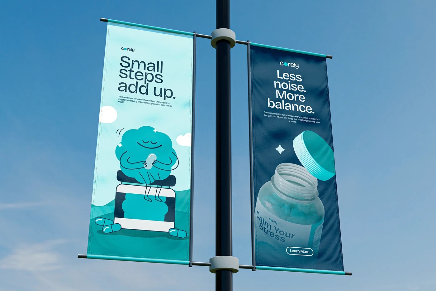 Por estarem lado a lado, elas não brigam por atenção. Essa combinação é muito frequente na natureza e, por isso, o nosso cérebro a processa de forma muito relaxante. É uma estratégia excelente para o design de marcas ligadas à saúde, bem-estar, ecologia ou tecnologia sustentável, onde o objetivo é transmitir uma sensação de fluidez e tranquilidade.