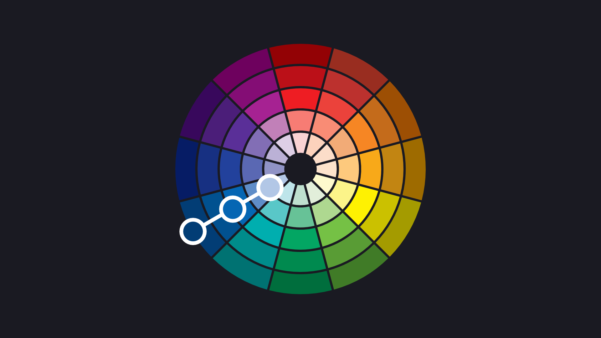 Esta é a fórmula mais segura e sofisticada de todas. A harmonia monocromática usa apenas um único matiz (uma única cor base) do círculo cromático. O segredo para o projeto não ficar chato é variar intensamente a saturação e o brilho dessa única cor (conceitos que aprendemos na aula anterior).